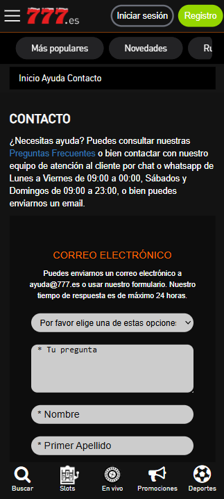 Atención al cliente en Casino777