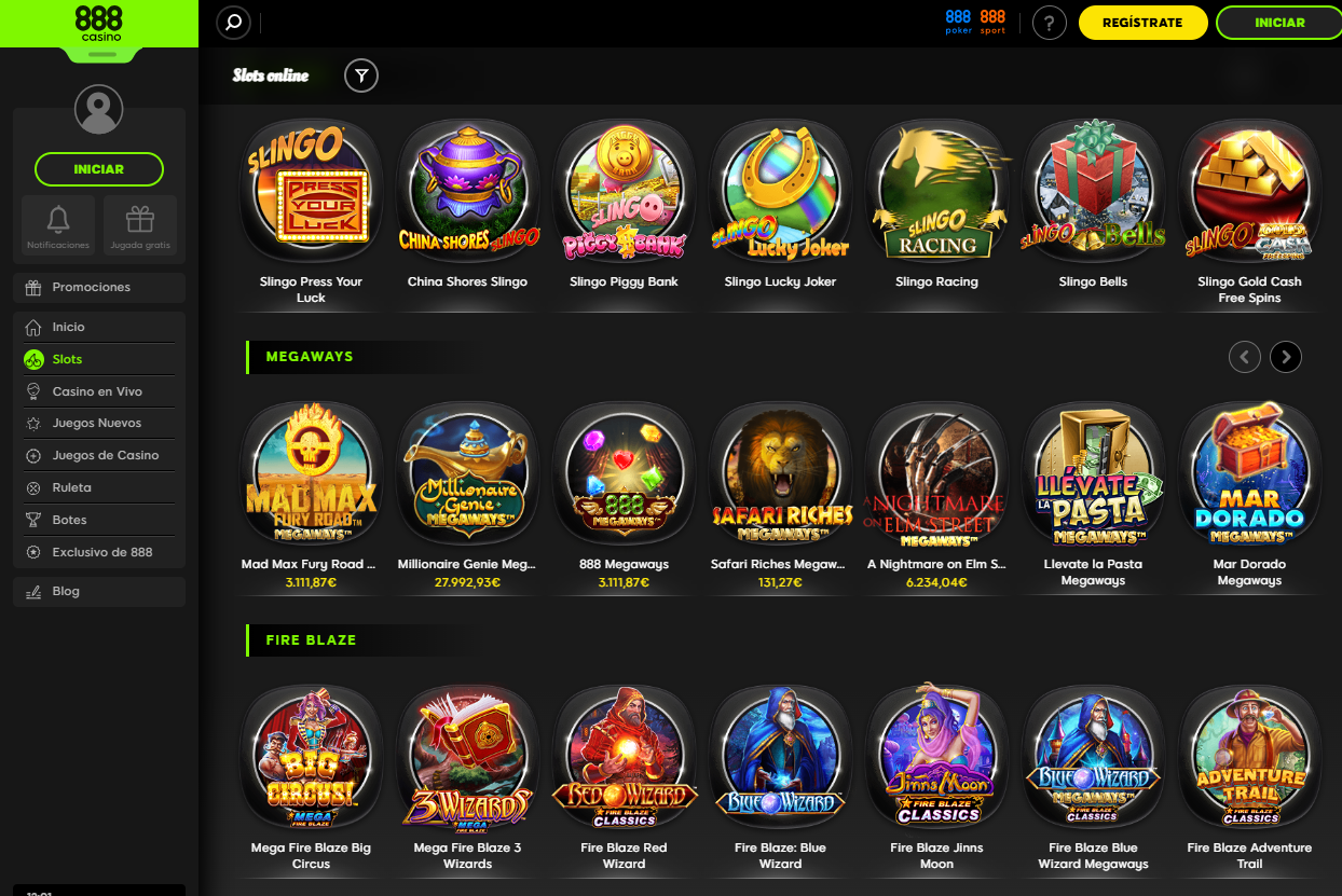 Sí, los slots son el juego más buscado en 888 Casino España, el cual ofrece 1500+ títulos.