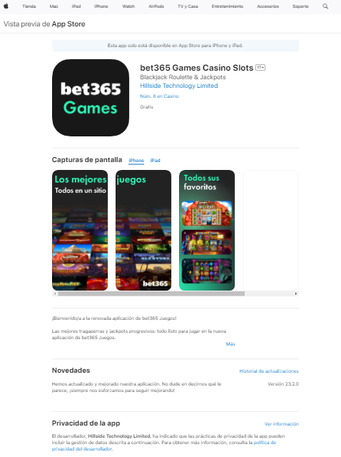 Un punto a destacar es que el casino ofrece una app Bet365 Casino mobile, no solo para Android, sino que está disponible para iOS desde la tienda oficial. También garantiza una plataforma que se adapta a dispositivos con facilidad.
