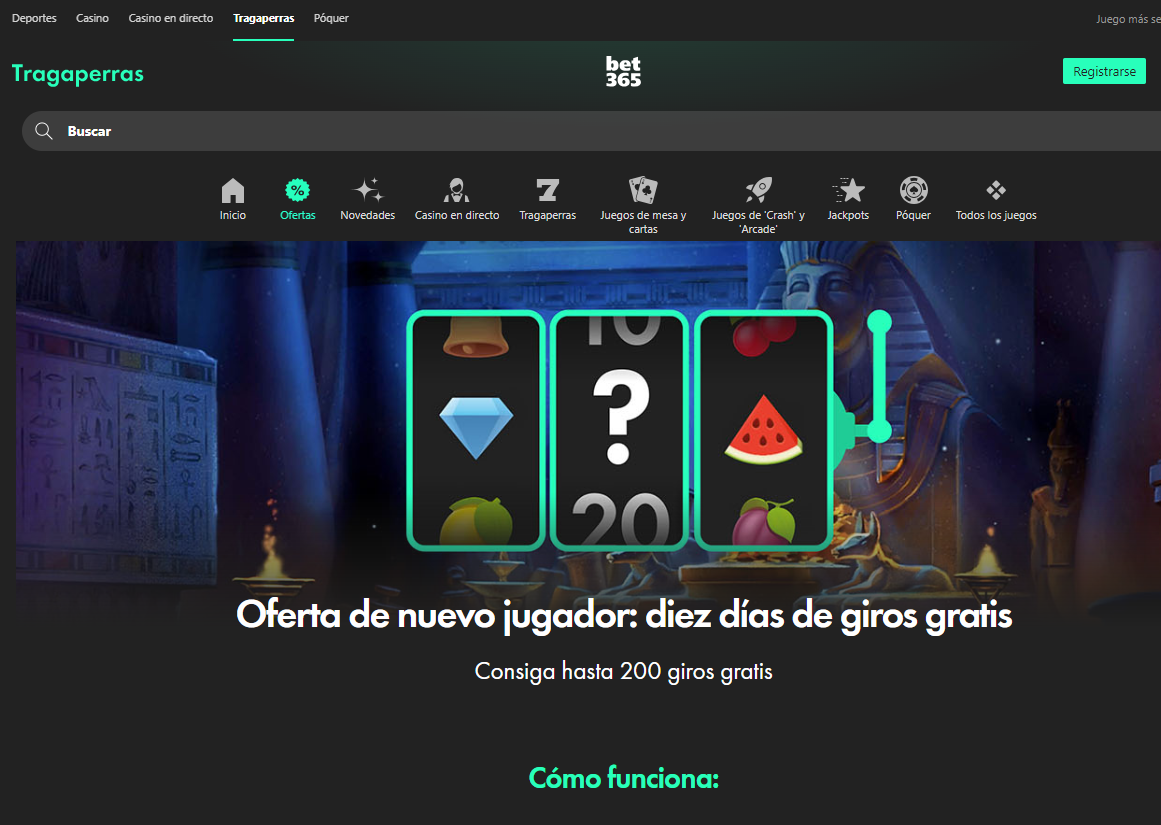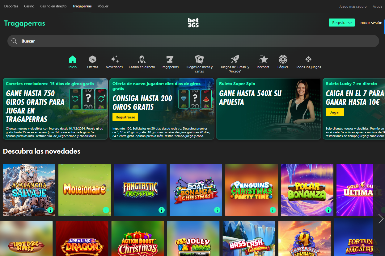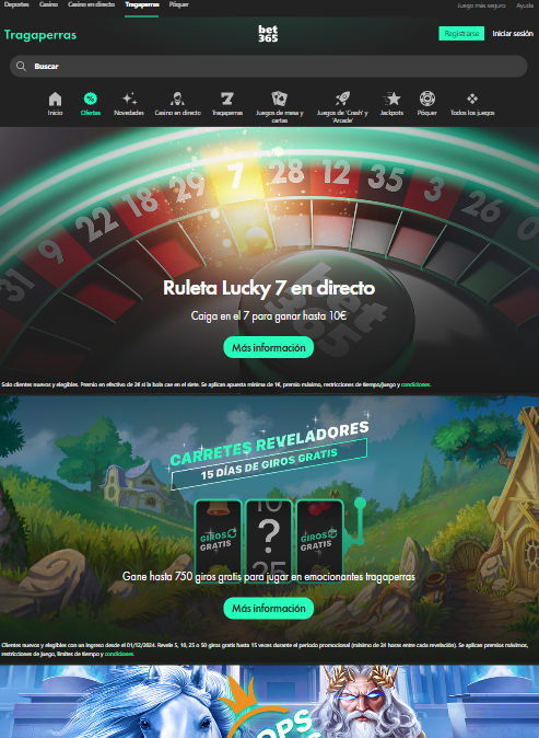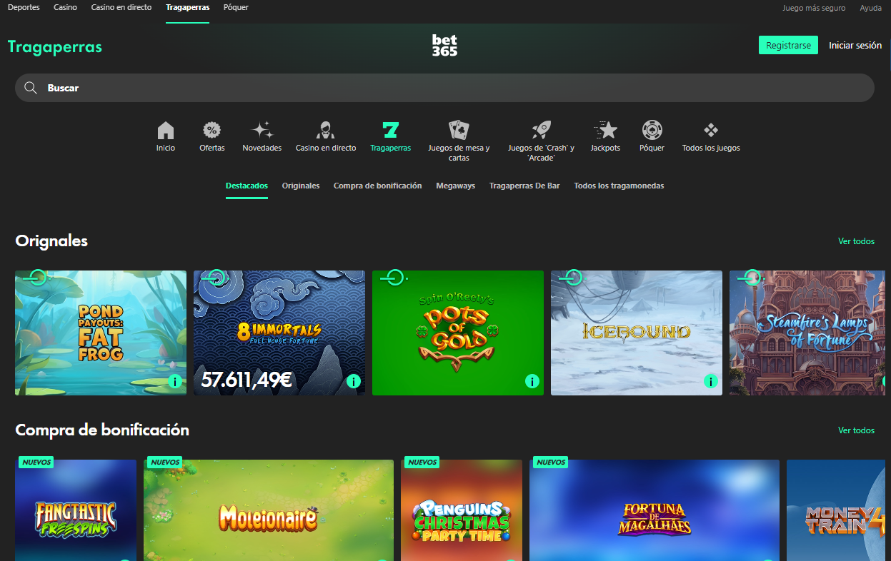El esquema de juegos de Bet365 Casino incluye las tradicionales tragaperras. El rendimiento de estas máquinas es alto, ofreciendo títulos de alta calidad, con funciones especiales y características llamativas ante los ojos de cualquier jugador.