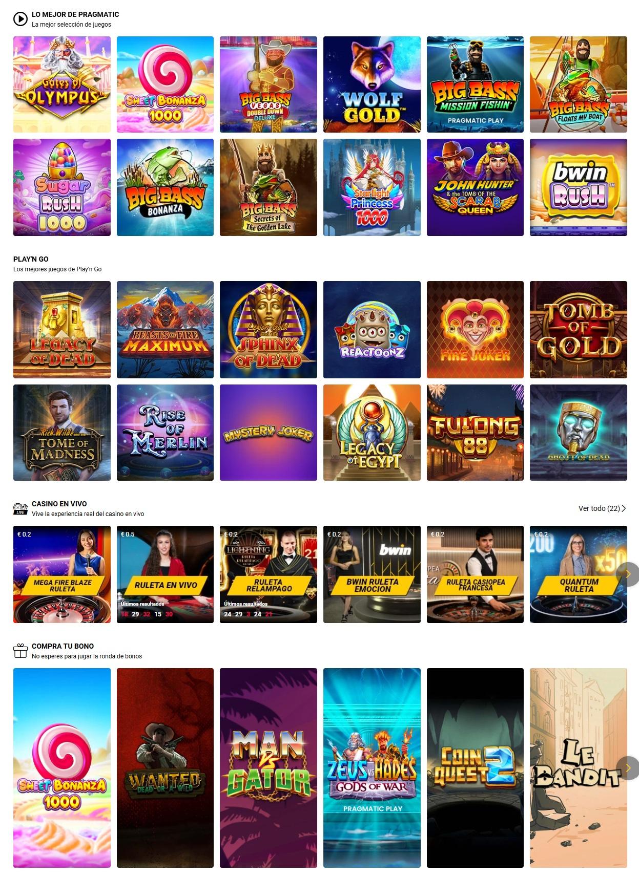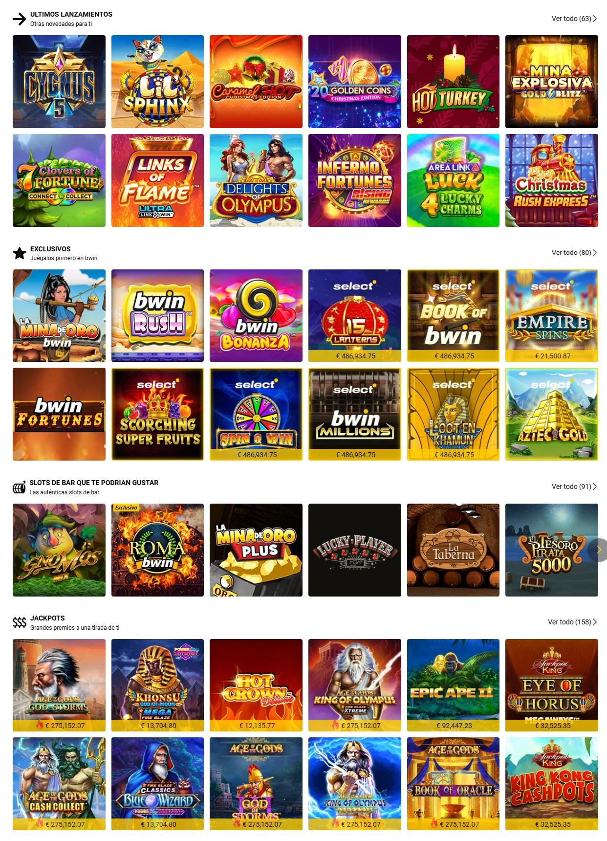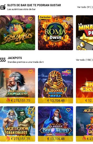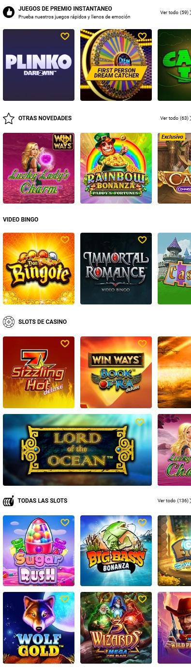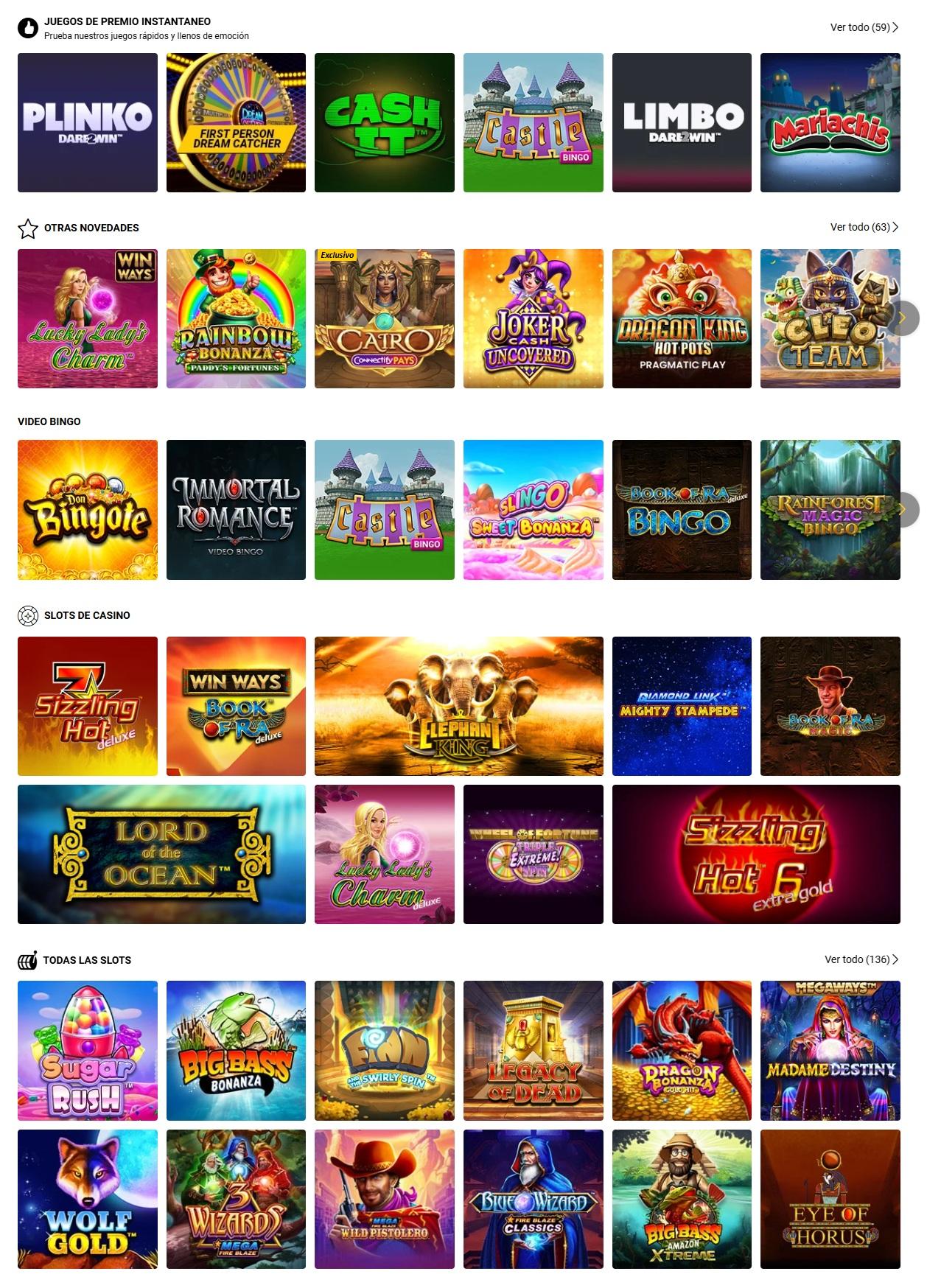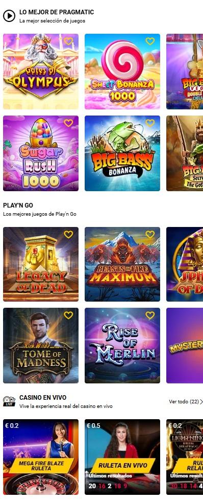 Tienen de todo: tragamonedas, ruleta, blackjack, baccarat y casino en vivo.