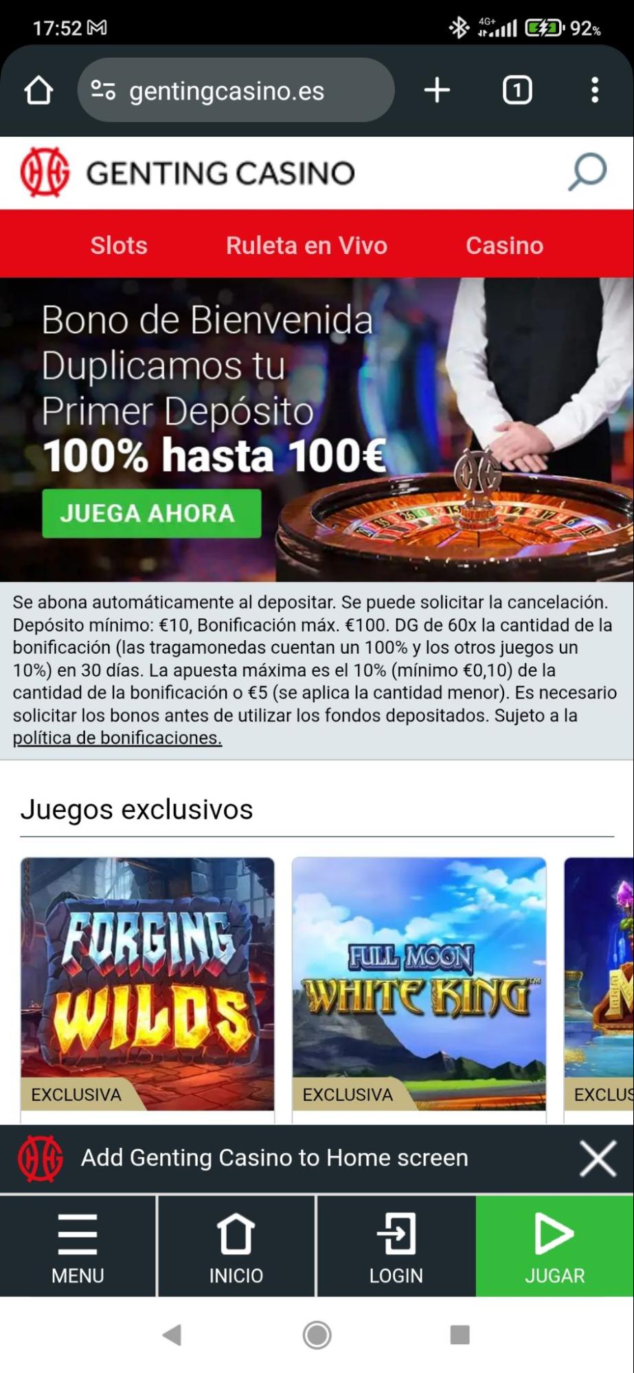 No están disponibles en estos momentos giros gratuitos o Genting Casino bono sin depósito.
