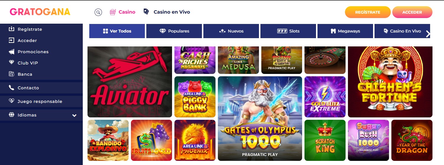 Gratogana garantiza juegos de primera categoría trabajando con desarrolladores de élite como Pragmatic Play, Play’n GO, Evolution Gaming y MGA. Con juegos para PC y dispositivos móviles, la plataforma prioriza la fiabilidad y la experiencia del usuario. Su programa está pensado para ofrecer un rendimiento impecable e imágenes brillantes, aumentando así todo el deleite.