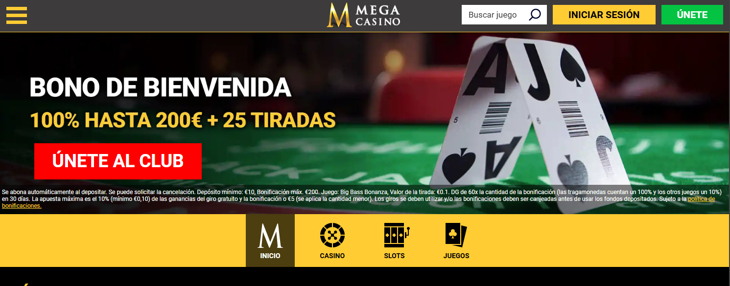 El bono de bienvenida de Mega Casino está diseñado para ofrecer a los nuevos jugadores un buen comienzo. Una vez que te registres y hagas tu primer depósito, recibirás un bono del 100% de hasta 200 €, junto con 25 tiradas gratis en la popular tragaperras Big Bass Bonanza.