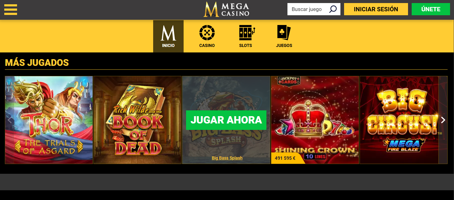 Mega Casino es una plataforma operada por SkillOnNet LTD. Ofrece una buena experiencia de juego a los jugadores españoles, con una selección de juegos decente, bonificaciones y una interfaz práctica.