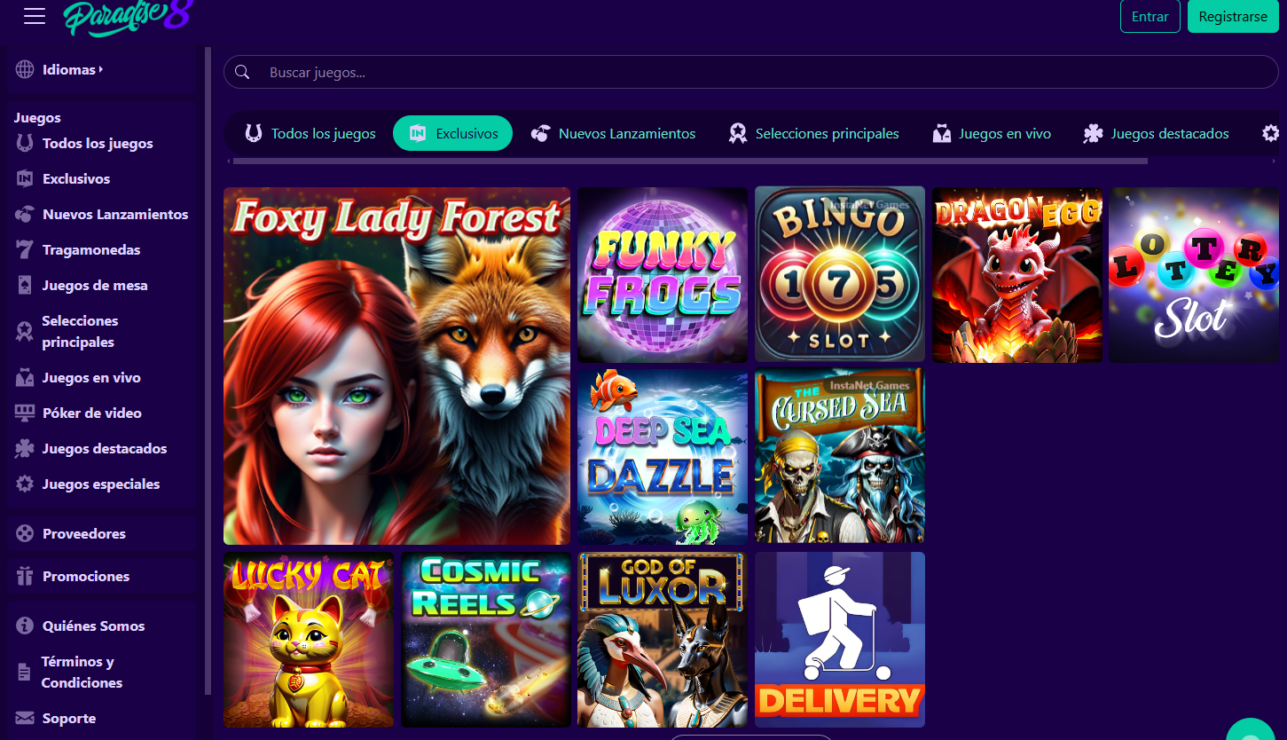 Paradise8 Casino cuenta con juegos de proveedores como Felix, Fugaso, Rival, Spinomenal, Tom Horn Gaming y muchos más.