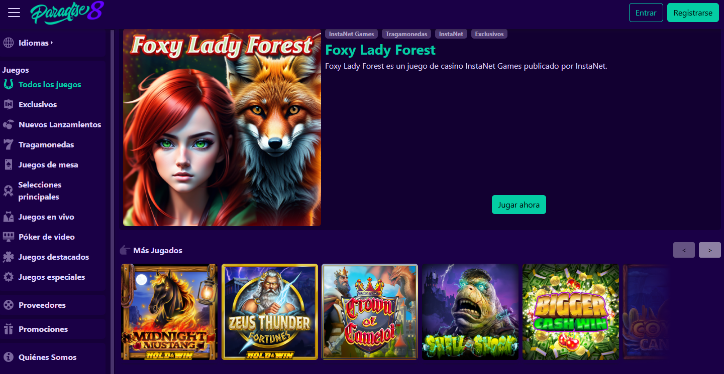 Paradise8 Casino trabaja con un puñado de proveedores de juegos, entre los que se incluyen nombres tan conocidos como Rival, Felix Gaming y Fugaso. Aunque la lista no es extensa, estos proveedores garantizan que los juegos son de buena calidad y proporcionan experiencias de juego justas. Rival