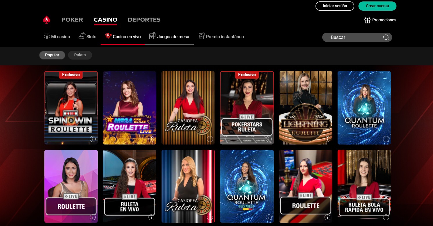 El PokerStars casino live no cuenta con una gran variedad de títulos. Por lo tanto, nos parece poco interesante la propuesta de jugar con crupieres en directo mediante streaming.