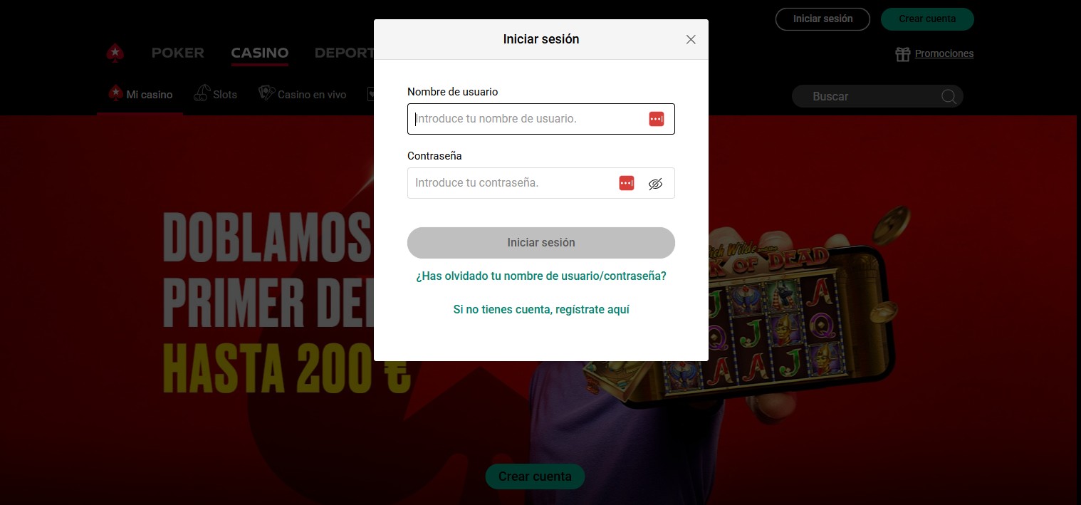 Para PokerStars casino entrar es necesario seleccionar la opción de “Registro” en la página principal.