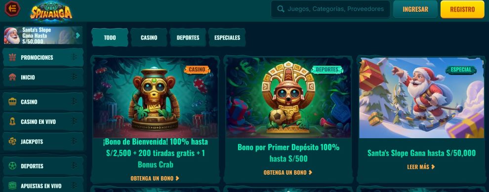 Spinanga Casino es una plataforma de juegos en línea que ha ganado popularidad en España por su amplia variedad de juegos y promociones atractivas. Fundado en 2023 y operado por Rabidi N.V., Spinanga ofrece a los jugadores una experiencia de juego envolvente con una temática inspirada en las antiguas civilizaciones de Mesoamérica. El sitio web está diseñado para ser intuitivo y fácil de navegar, lo que permite a los usuarios acceder rápidamente a sus juegos favoritos y a las promociones vigentes.