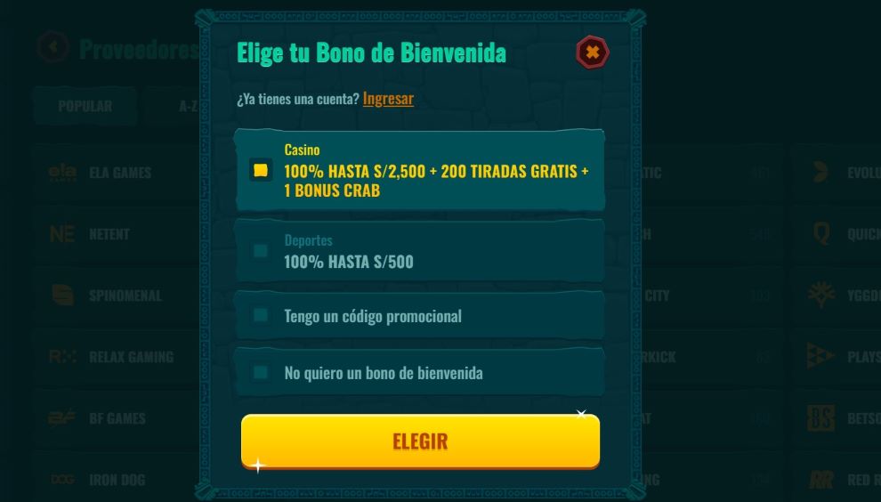 Después de registrarse, los nuevos jugadores pueden aprovechar el atractivo Bono de Bienvenida, que incluye un 100% de bono en el primer depósito y giros gratis adicionales. Los jugadores existentes también pueden disfrutar de bonos como el Bono de Recarga Semanal, el Bono de Bienvenida Crypto y otras promociones emocionantes como torneos y giros gratis.