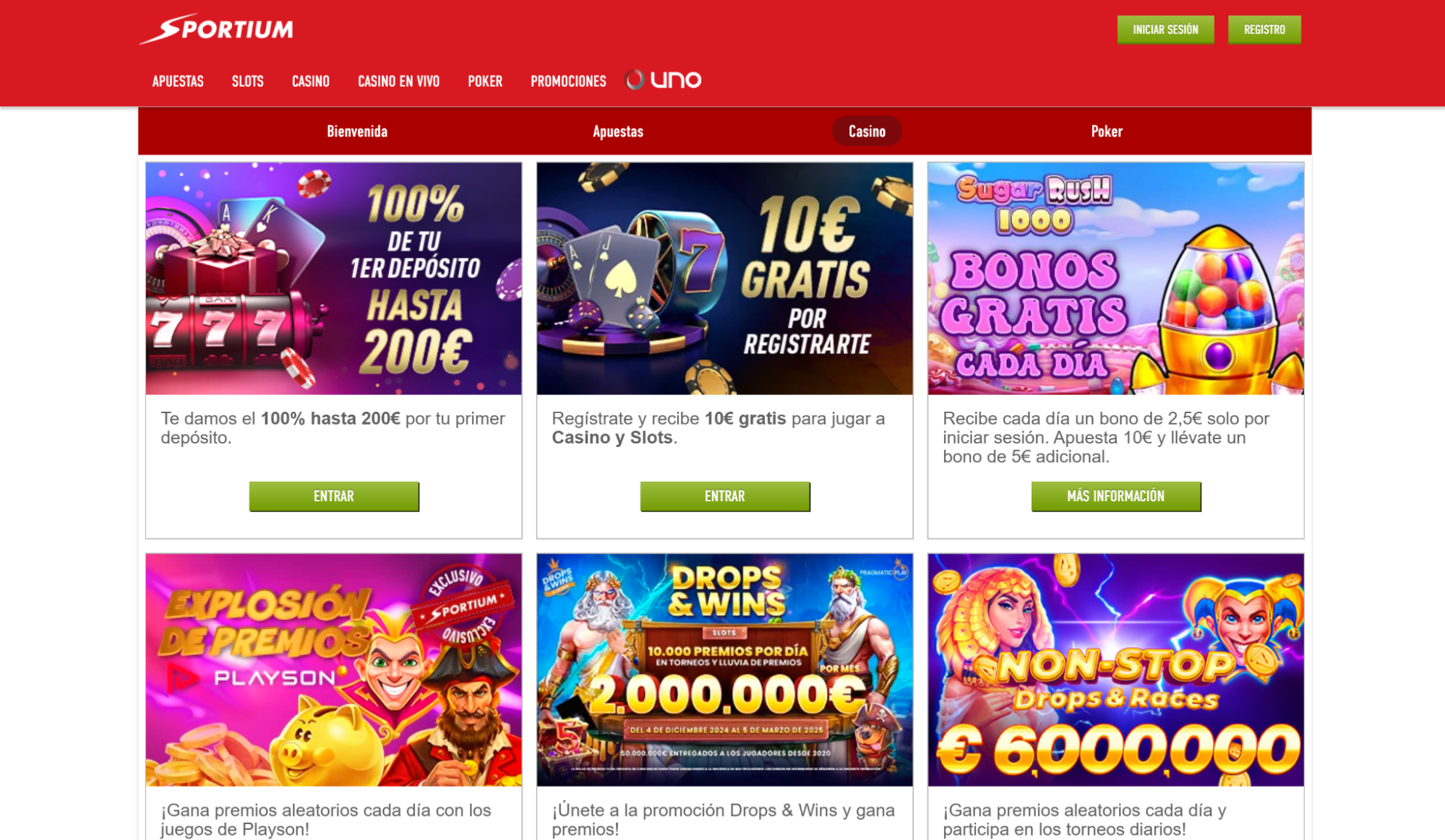 El Sportium casino dispone de una amplia gama de bonos. Si eres un jugador nuevo, puedes conseguir un bono sin depósito y un paquete de bienvenida. Como jugador fiel, puedes unirte al programa VIP y obtener bonos diarios.