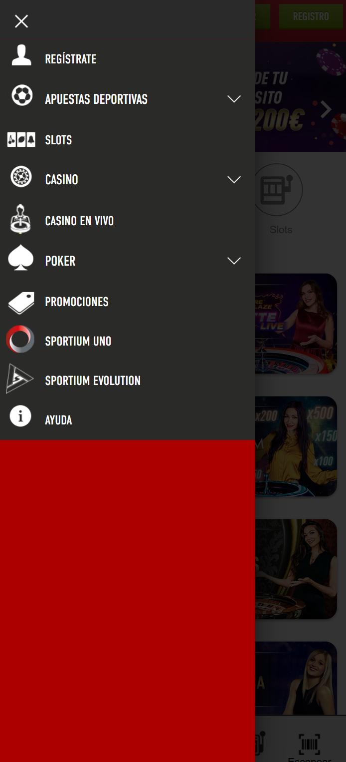 Sportium Casino tiene una aplicación dedicada. Se puede descargar desde la App Store o Google Play, dependiendo de tu sistema operativo. También puedes acceder al sitio web a través de tu navegador móvil si no deseas descargar nada y ocupar espacio en tu dispositivo, y el sitio web móvil tendrá todas las funciones de la versión de escritorio.