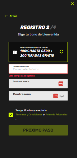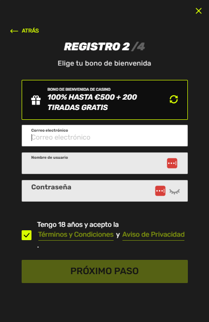 100 % hasta 500 € y 200 giros gratis