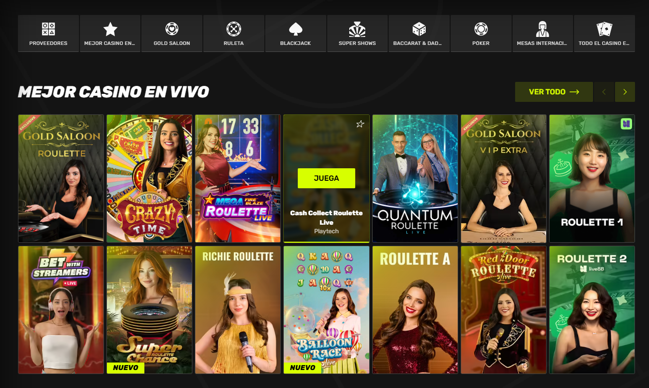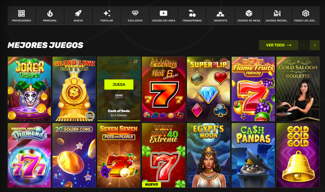 Amplia variedad de juegos y apuestas.