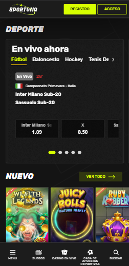Desde su fundación en el año 2022, Sportuna se ha caracterizado por combinar la innovación y la calidad en el sector del juego en línea. Hoy día Sportuna Casino ofrece a sus usuarios una experiencia de juego basada en la seguridad y la honestidad, incluyendo en su catálogo varios de los mejores títulos disponibles en el mercado.