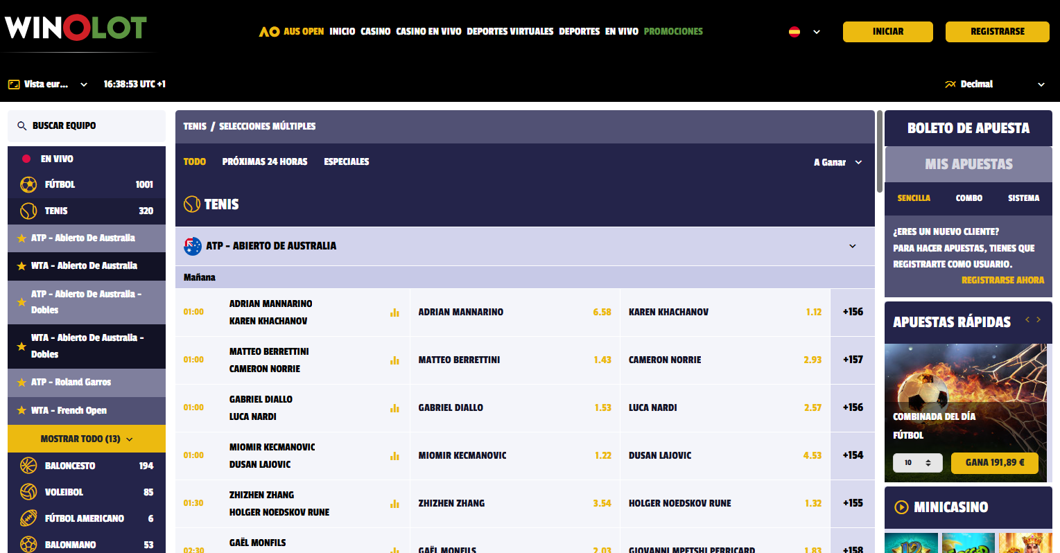 Por último, Winolot dispone de otros formatos igualmente muy atractivos, como las apuestas deportivas o los deportes virtuales.
