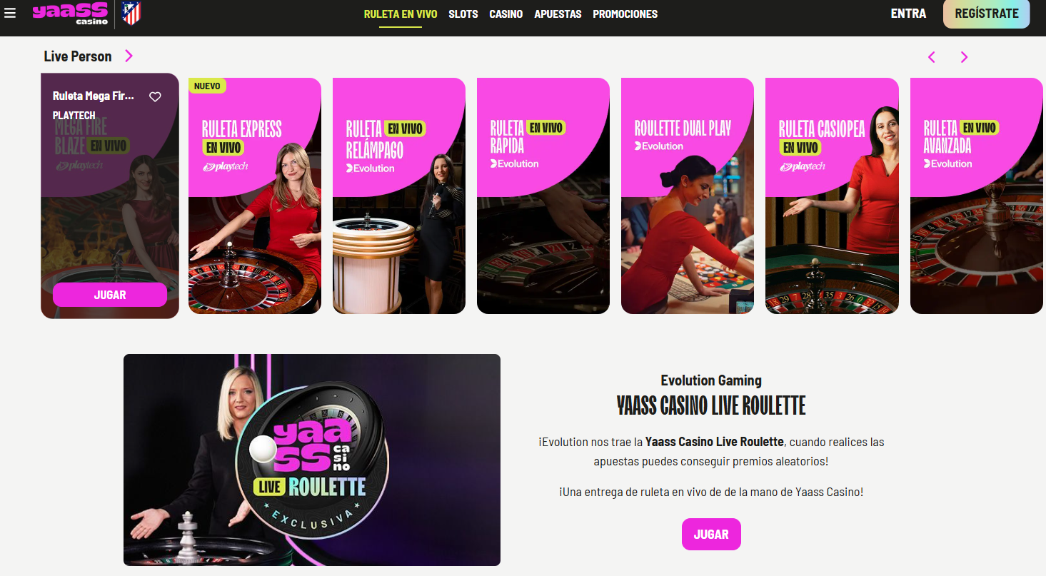Uno de los principales atractivos de Yaass es la experiencia de casino en vivo, que ofrece a los usuarios la oportunidad de interactuar con crupieres en tiempo real, igual que lo harían en un casino tradicional. Yaass Casino hace hincapié en la inmersión y ofrece una amplia gama de juegos con crupier en vivo para que la experiencia de juego en línea sea más realista.