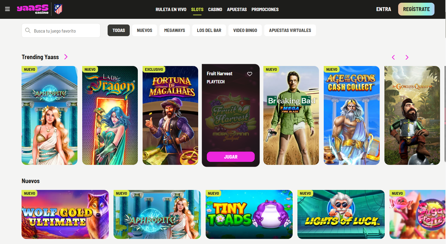 Yaass ofrece más de 2.000 juegos, entre tragaperras, blackjack, ruleta, juegos con crupier en vivo y jackpots.